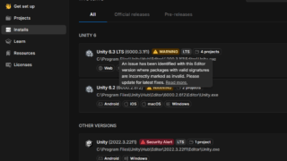 Unity HubでWARNING警告が出てたので解消した記事です。An issue has been identified~って警告が出てました。