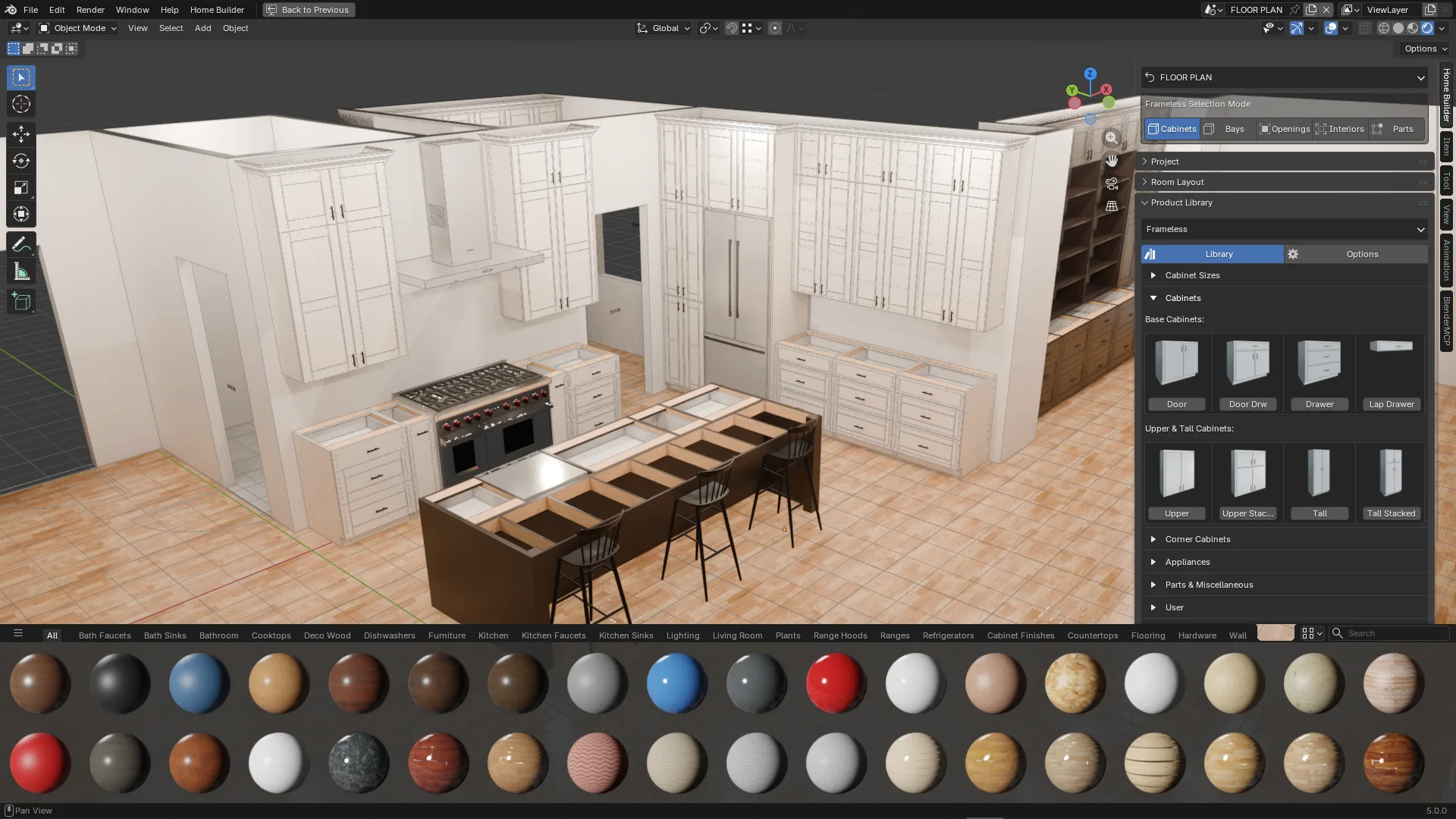 Blenderの Home Builder 5 は、住宅の内装(特にキッチン・洗面・クローゼットなど)を 設計ソフトのように作れる無料アドオンです。普通のモデリングとは違い、壁・家具・家電をパラメトリック(数値で調整)しながら配置できるのが特徴です。