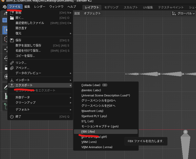 まぁ簡単すぎるモデルだからアレだけど、blendファイルとFBXファイルを置いておきます。