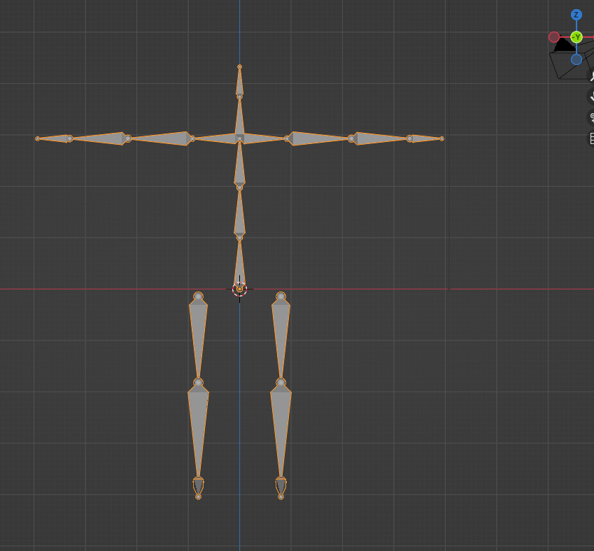 最初のUpperLegは片方を選択して G X で横に移動、R Y -90 で回転させてSキーでちょっと大きくし、G Zで下に移動させます。