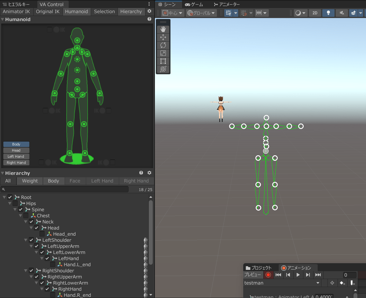 veryanimationで表示してみたけど、ちゃんとhumanoidとして認識されてるみたいですね。