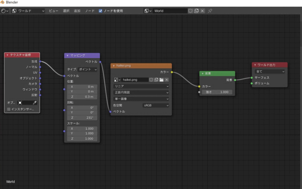 ワールドのシェーダーノードはこんな感じ。
