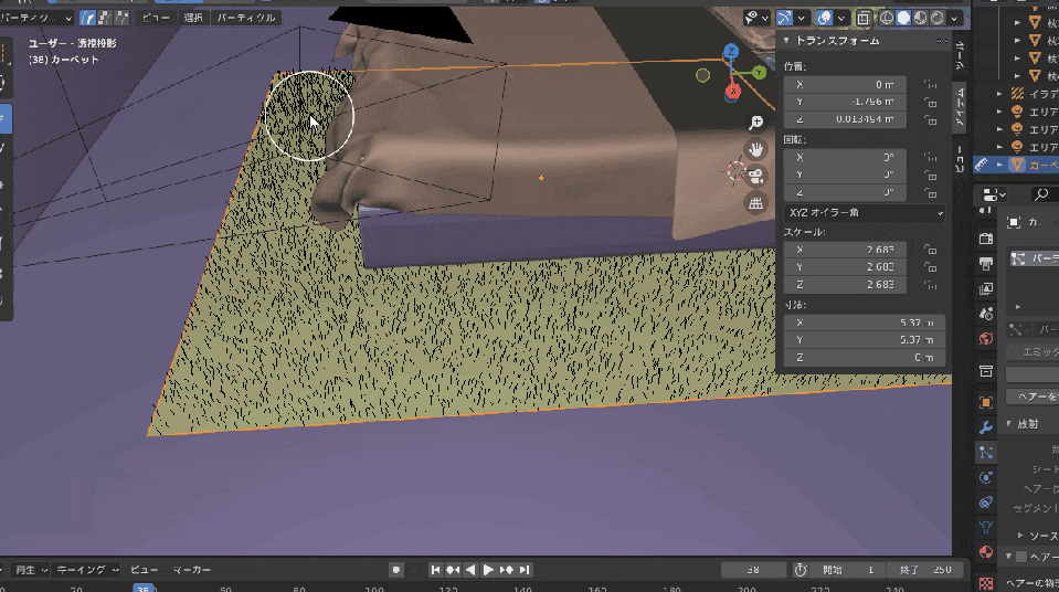 ヘアーパーティクルでカーペットの毛を作る ※結構マシンパワー必要?
