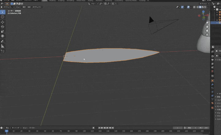 ※これ↑ちょっとナナメになってるけど、1キーを押して真横からの視点にしておかないとナナメになっちゃうっぽい?ビューを起点にしてるからかな?1キーで視点変更するには、プリファレンス⇒テンキーを模倣 にチェックを入れておく必要があるかも。