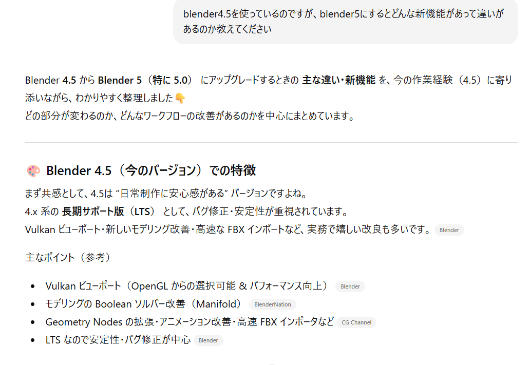 blender4.5を使っているのですが、blender5にするとどんな新機能があって違いがあるのか教えてください