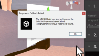 Unityトラブルシューティング VRChatワールドでThe VRCSDK build was aborted because the IVRCSDKPreprocessSceneCallback ‘AssignSceneNetworkIDs’ reported a failure.エラーが出たメモ