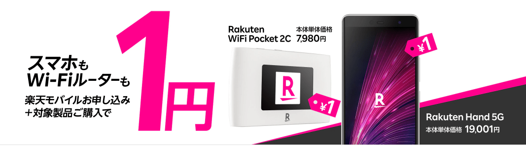 ※ 2023年11月24日(金)8:59をもって「Rakuten Hand 5G/Rakuten Wifi Pocket 1円キャンペーン」からRakuten Hand 5Gはキャンペーン対象外になります。