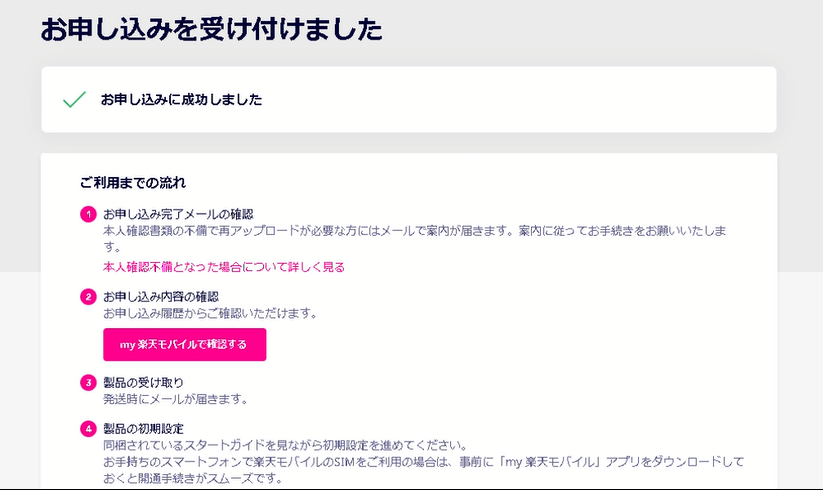 my rakutenモバイルにログインして開通設定をする ※まだ開通してなかった