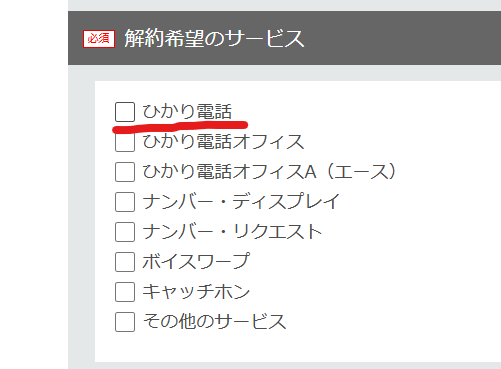 解約希望のサービスは「ひかり電話」で