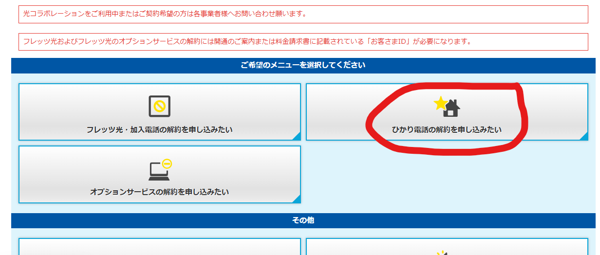 検索すると「ひかり電話の解約には電話が必要!」って情報ばかり出てくるけど、ネットからもできるっぽい