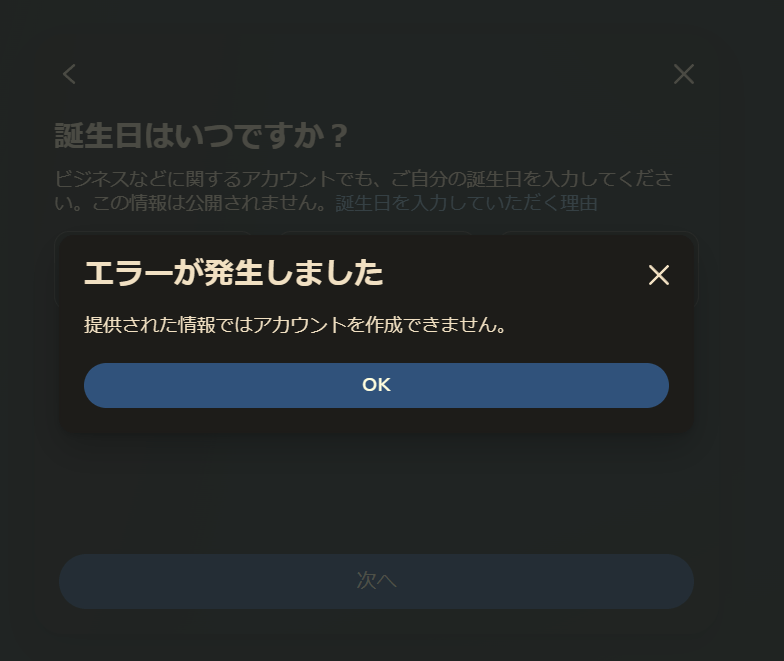 提供された情報ではアカウントを作成できません。