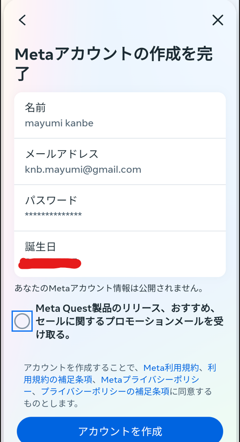 今日Meta Quest2のMetaアカウントリリースのお知らせが来ていたから、作成してみました。