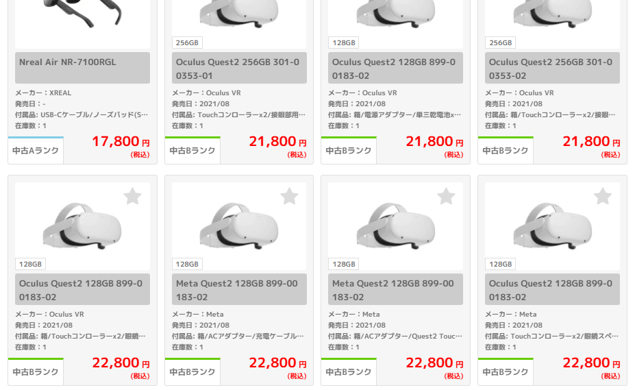 新品のQuest2があればそこまで変わらない可能性もあるかもしれない。