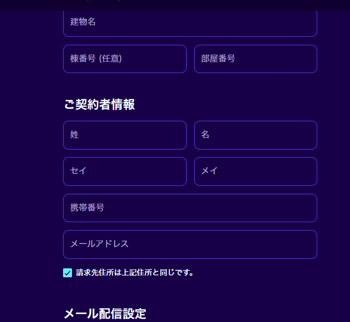住所、名前、電話番号、メールアドレスなどの入力欄があるので記入します。