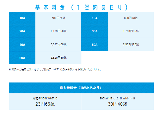 300kwhまで23.66円のため、200~300kwhくらいの使用量だと他社とそんなに変わらなくなってくる。地区にもよるけども。
