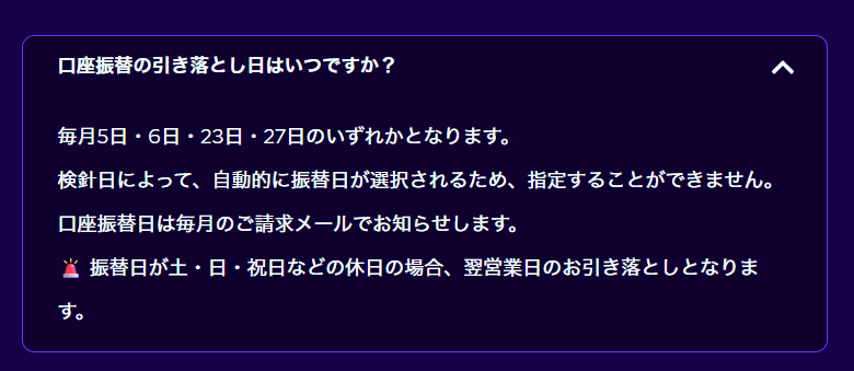 ↓口座振替の場合の引き落とし日は検針日によって変わるっぽい?これは契約開始日や地区によって変わるのかな?