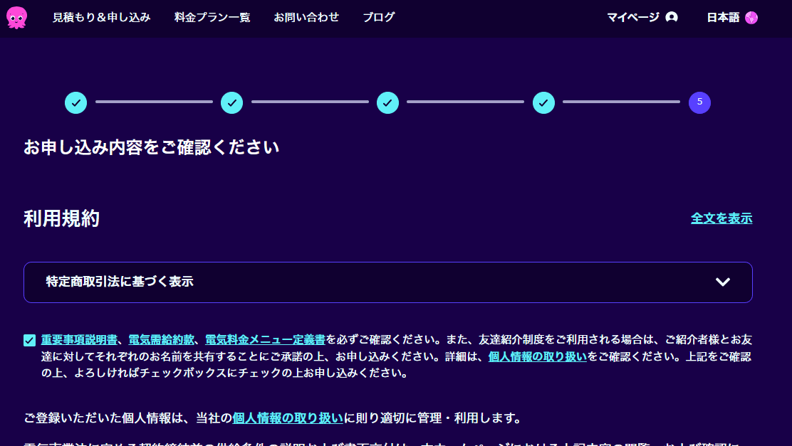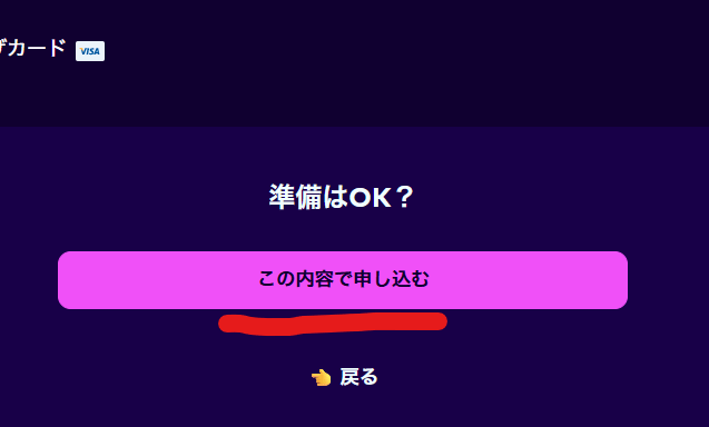 もう最終確認まで行きましたが、特商法の表示などを見て、大丈夫なら「この内容で申し込む」を押せばOK。