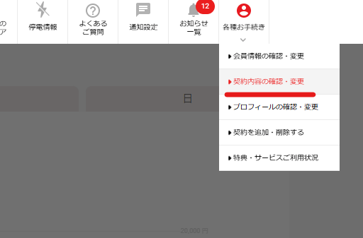 くらしtepcoにログインし、画面右上の 各種お手続き ⇒ 契約内容の確認・変更 から見れます。