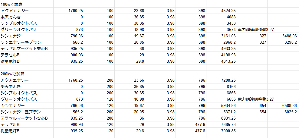 けっこう前から燃料調整費マイナスの状態が続いていたので、燃料調整費がかからないぶん基本料が高いアクアエナジーが割高になってきていたんですよね。
