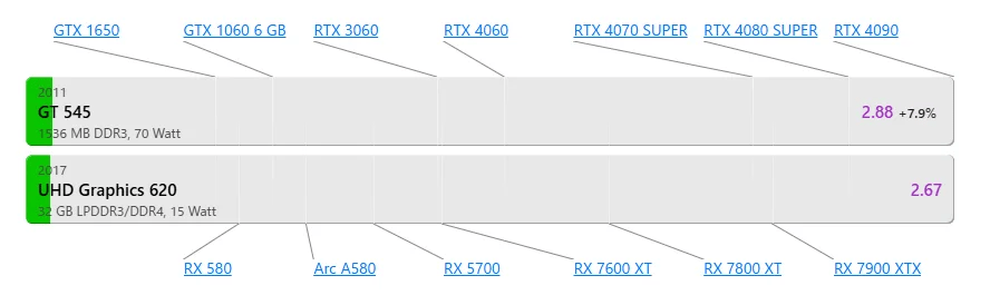 今使ってる8250UのUHD Graphics 620がGT545と同じくらいだったので、だいぶ進化してるかな。