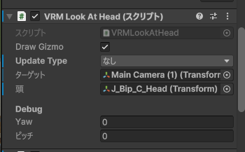 あとVRM Look At Headとは相性が悪いっぽい?Update Typeなしにしたら動いたけど。
