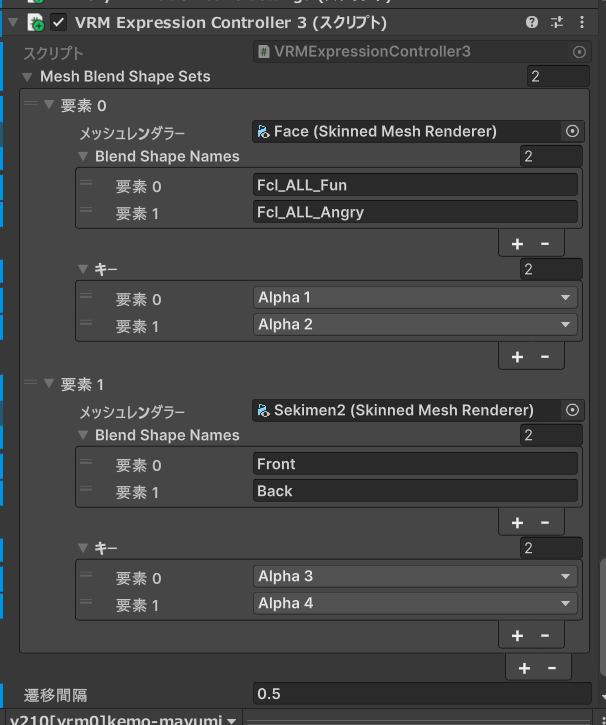 - 2025/10/12追記:複数のスキンメッシュレンダラーを指定し、キーも指定できる改良版 VRMExpressionController3.cs