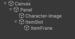 |ーアイテムスロット 空のオブジェクト。子にアイテムフレームやアイテム画像が並ぶ