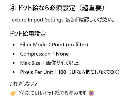 ドット絵にしたいわけではないけどこんな感じの設定だと良いかな?