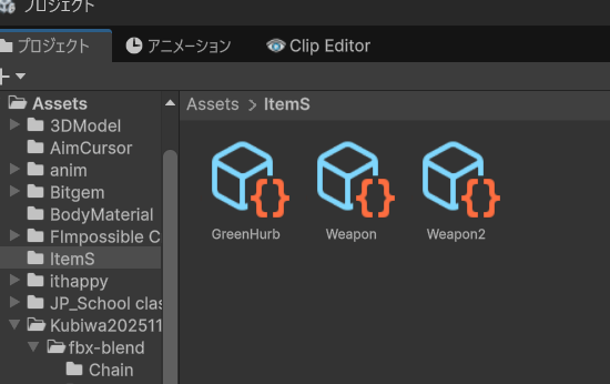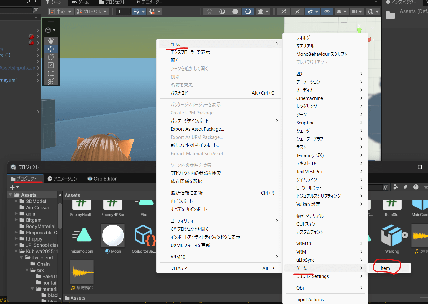 プロジェクトで右クリック⇒作成⇒ゲーム⇒Item で。