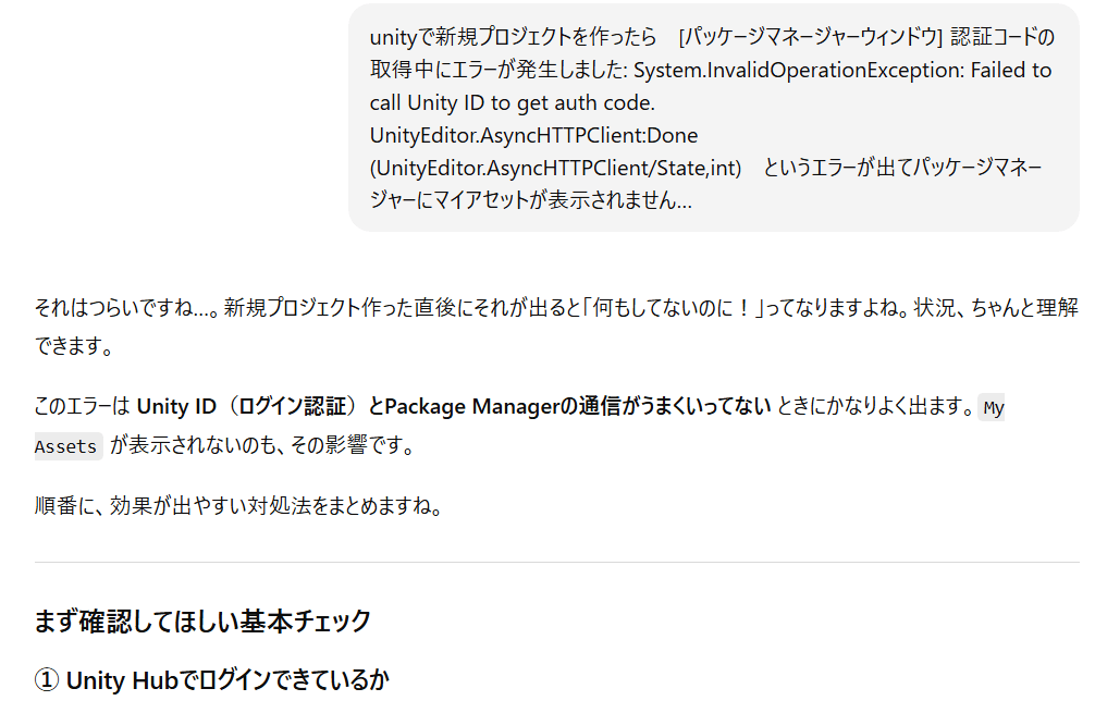 この記事はUnityでUnityで[パッケージマネージャーウィンドウ] 認証コードの取得中にエラーが発生しました: System.InvalidOperationException~ エラーが出たので、それについての記事です。