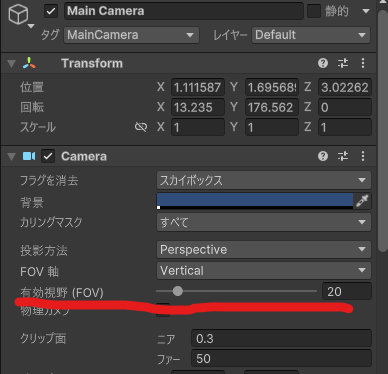 これChatGPTに聞いてみたけど、スクリプト使わないとシーンのカメラがFOVいくつになってるのか分からないみたい?なので手動で調整するしかないかも。