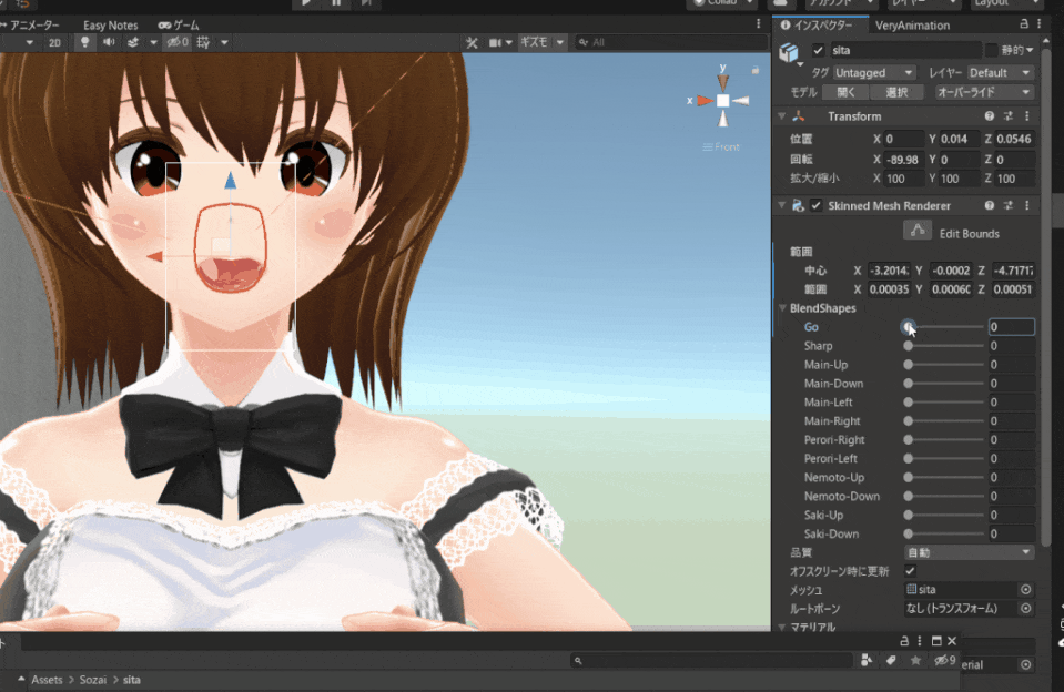 舌を出すだけ、トランスフォームでざっくり動かすだけなら、MeshRendererしか使わないMesh-Onlyのファイルが使いやすいかもしれません。