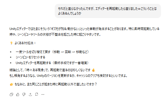 • Unityエディターを再起動する(最終手段ですが一番確実)
