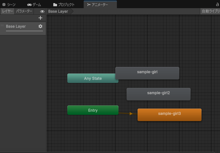 最初はAカテゴリに指定したアニメーションをランダム遷移、2キーを押したらBカテゴリに指定したアニメーション…みたいに切り替えられるようにした。