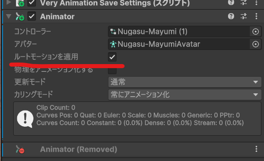 ルートモーションを適用 にもチェック