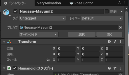 アニメーションウィンドウでプレビューする場合、0,0,0じゃないと位置がズレるっぽいです。