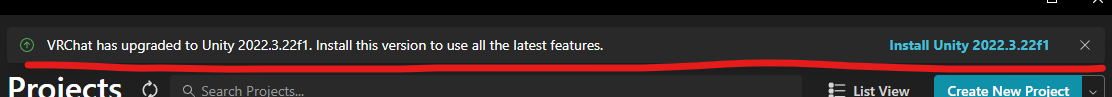 訳:VRChat は Unity 2022.3.22f1 をアップグレードしました。最新の機能をすべて使用するには、このバージョンをインストールしてください。