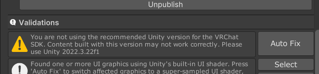 You are not using the recommended Unity version for the VRChat SDK. Content built with this version may not work correctly. Please use Unity 2022.3.22f1