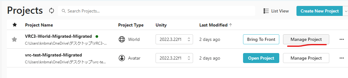 …押しても特に何も起こらなかったので、もう既存のプロジェクトをunity 2022.3.22で開けば良いのかな?