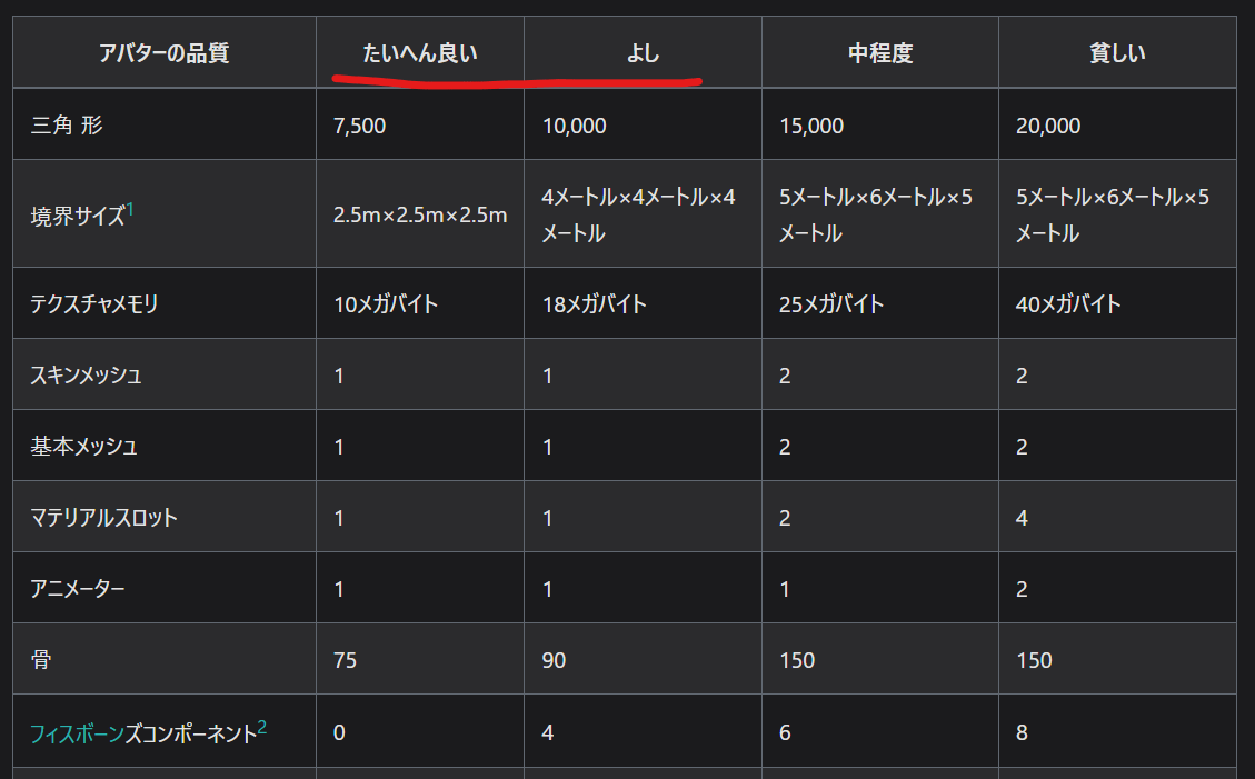 条件満たしておけばFallbackアバターとして使えるから、軽いモデルも作っておくと良いのかもしれない。