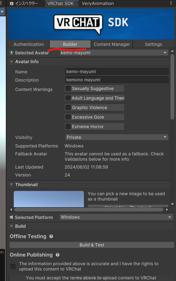 - やりたいこと : 以前作った自作アバターをFallbackアバターとしてアップする