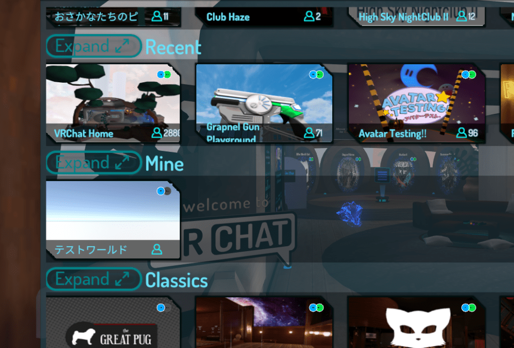 こんな何もないワールドでも立派にワールドとして認識されるみたいだから、VRChatやってる人は手軽に作ってみるといいのかも。