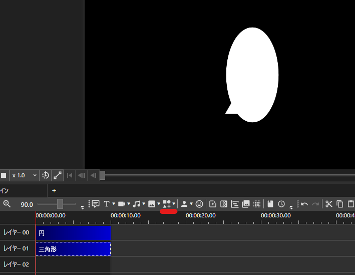 YMM4の図形機能を使えば、円と三角形を合わせても作れます。